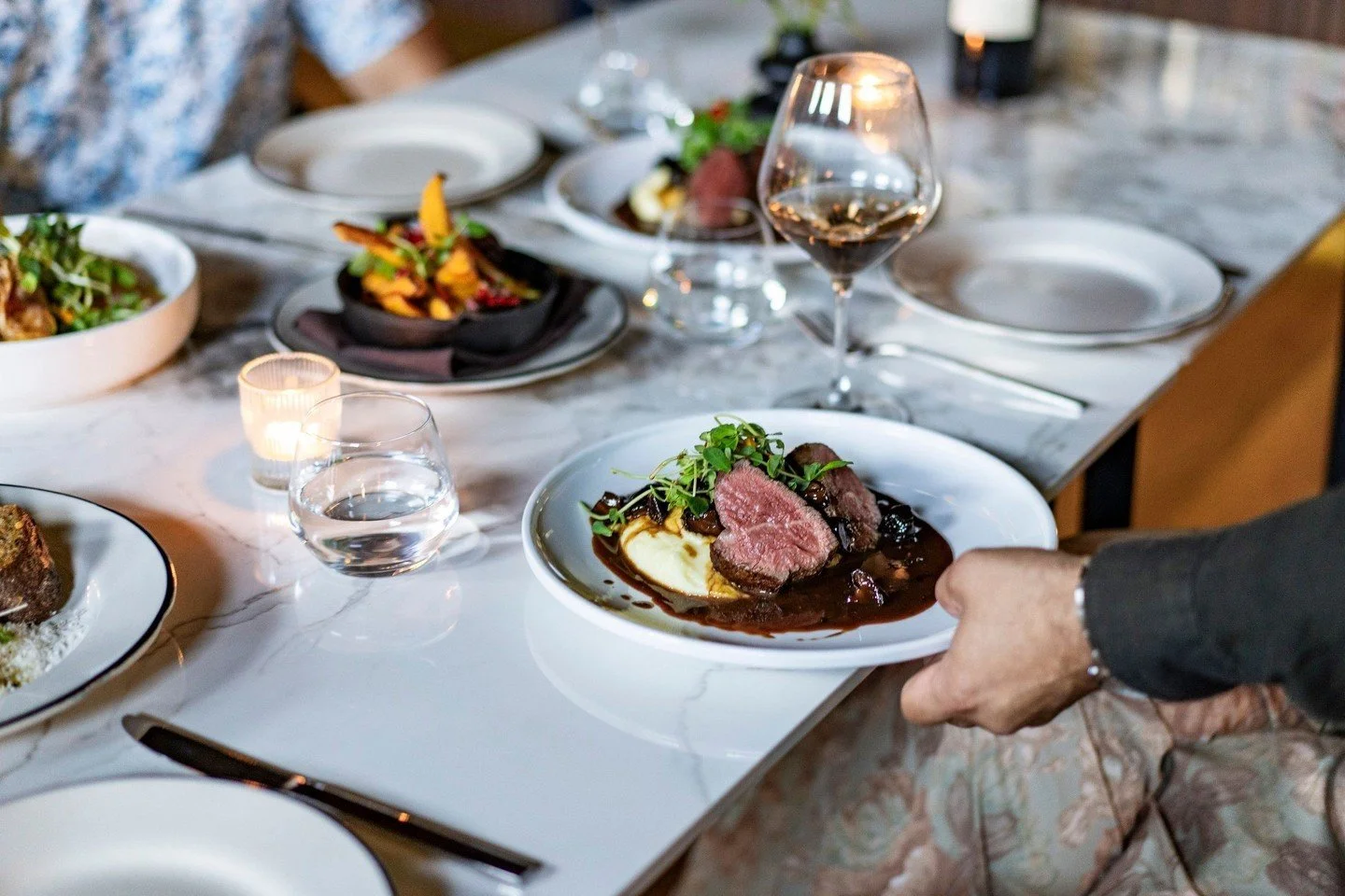 Group Dining β For gatherings of 13-24 guests, we present a thoughtfully curated menu showcasing our signature creations and seasonal specialties, served family-style at $80 per person. Complete dining room buyouts accommodate parties of 25-46 guests at the same per-person rate. Minimum requirements apply.