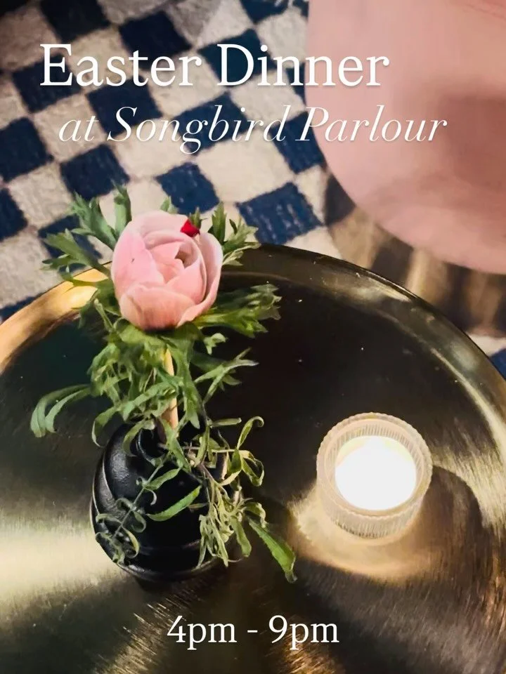 Songbird Parlour opens its doors Wednesday through Sunday, welcoming guests for intimate dining experiences. Service begins at 5:00 PM, concluding at 9:00 PM. We also host special events throughout the month, and are available for private events any time or day of the week.